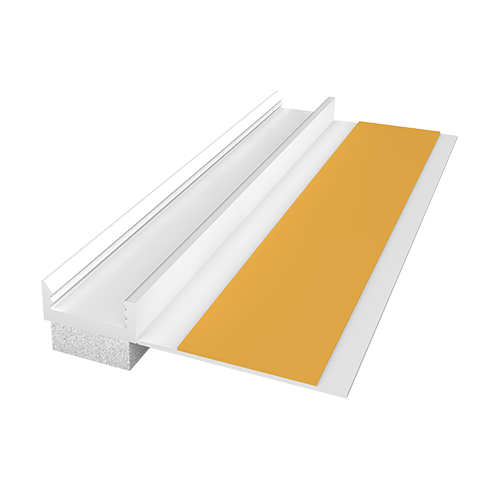 PVC deformacinis profilis, skirtas tinko ir armavimo mišinio sujungimui su langų arba durų rėmu.